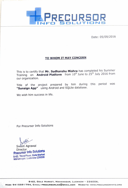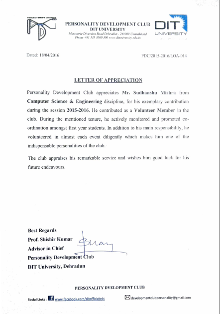 LETTER OF APPRECIATION